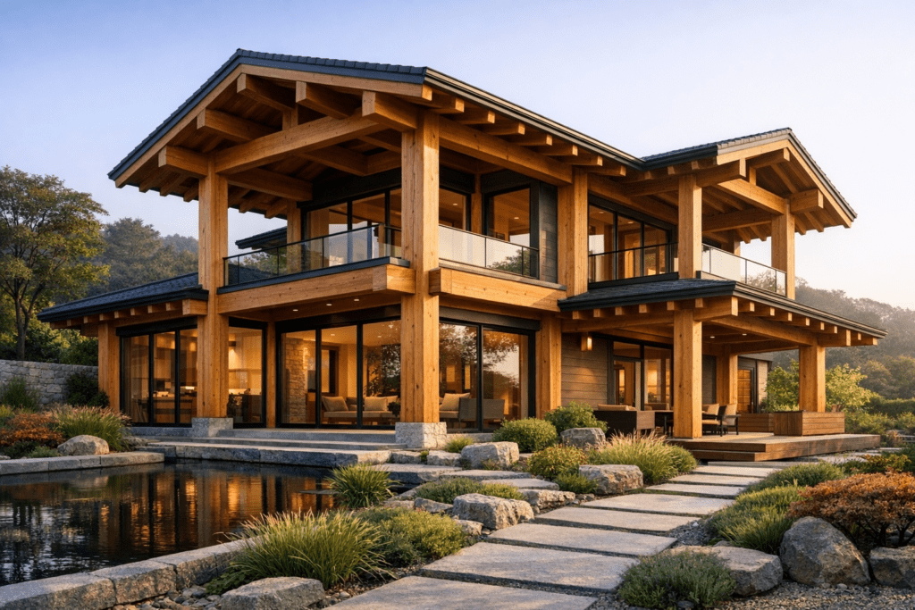 벽이 아니라 기둥과 보가 구조를 담당하기 때문에 공간을 보다 유연하게 계획할 수 있고, 목구조 특유의 분위기를 구조 자체로 드러낼 수 있다는 점이 큰 특징입니다. Source